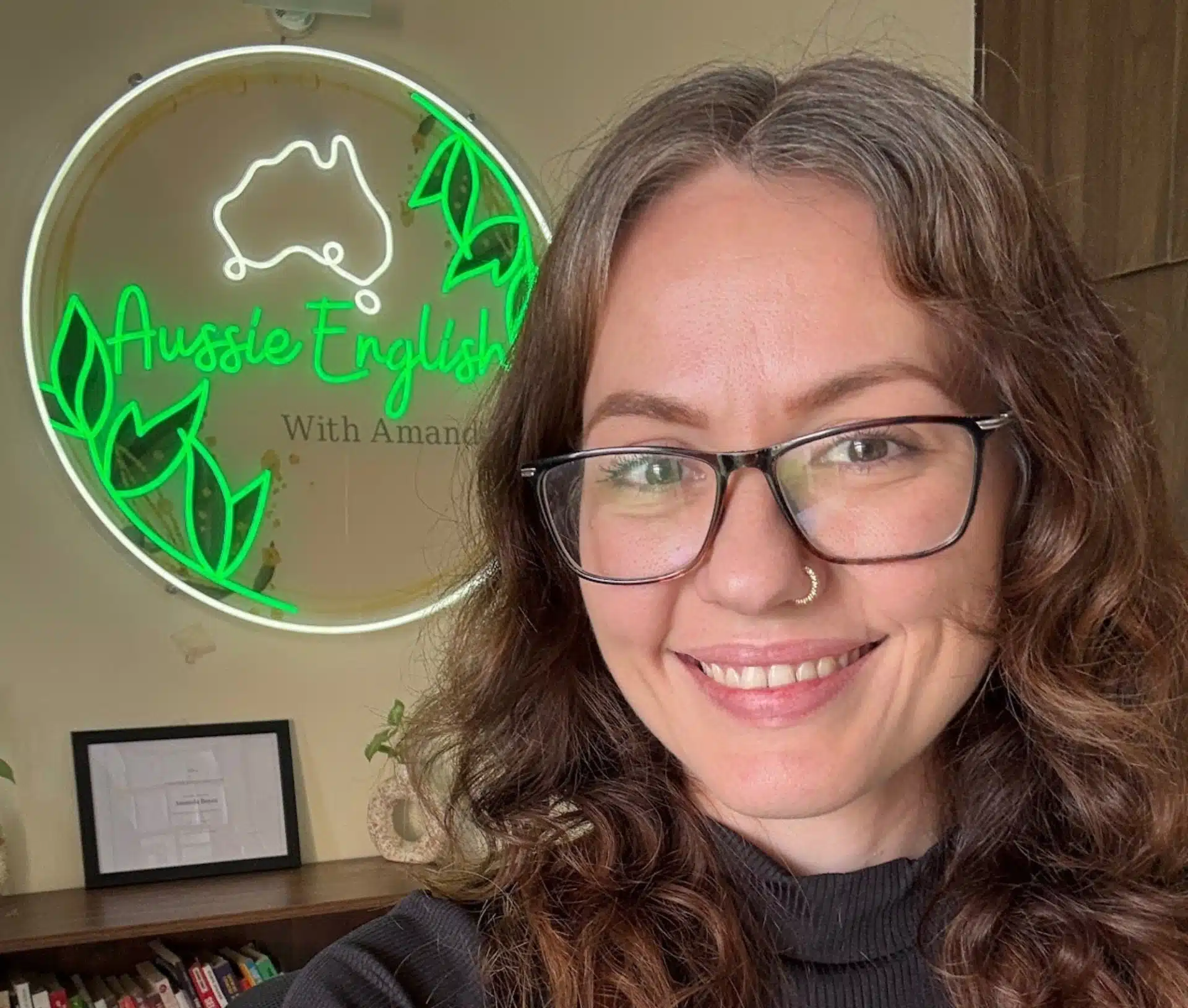 💡Tip: Position yourself so the bookshelf fills about a third to half of your background and place a small lamp or LED strip near the bookshelf to make it pop.
