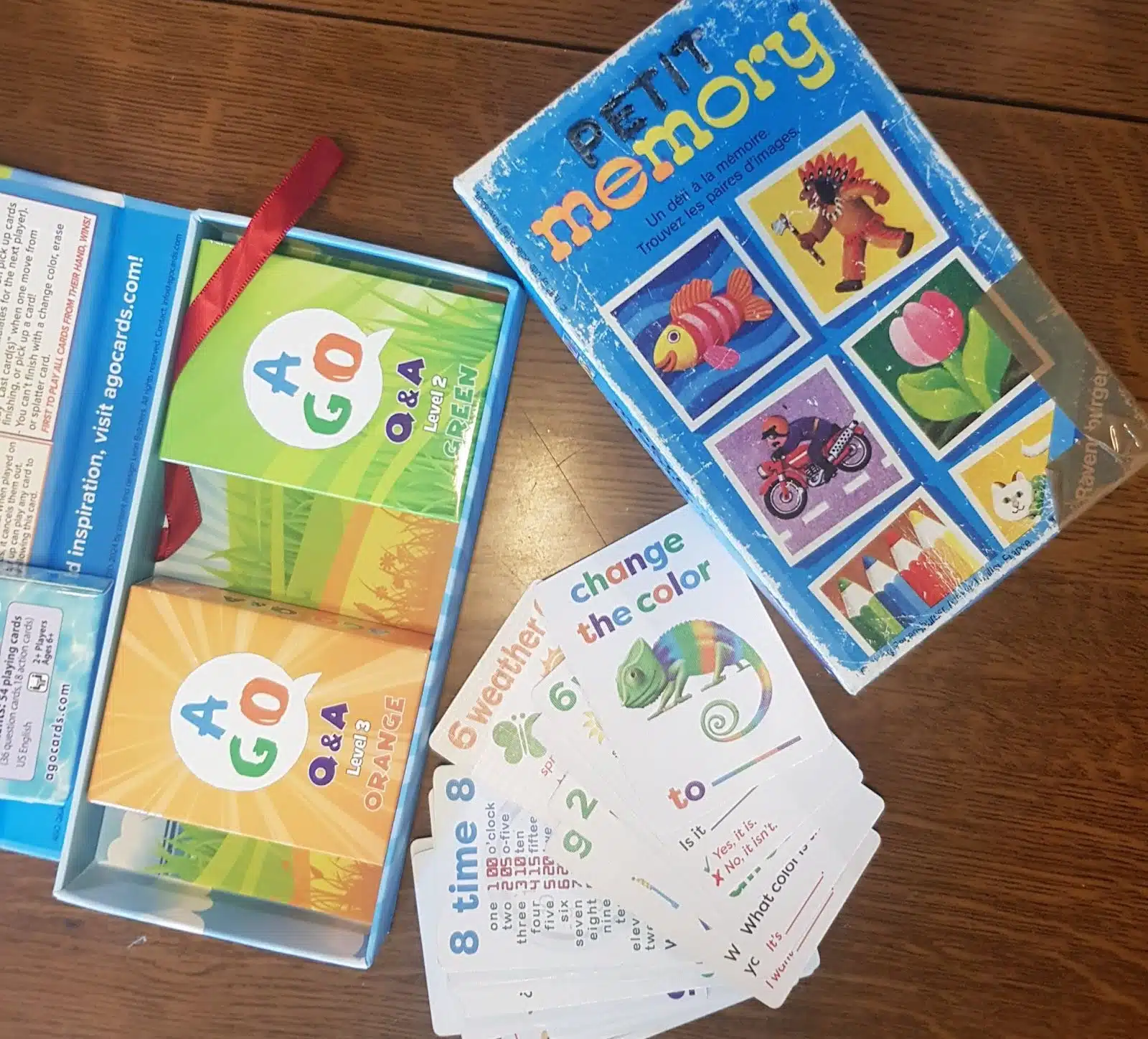 - AGO cards ( a similar concept to Uno, but the cards also contain English questions)