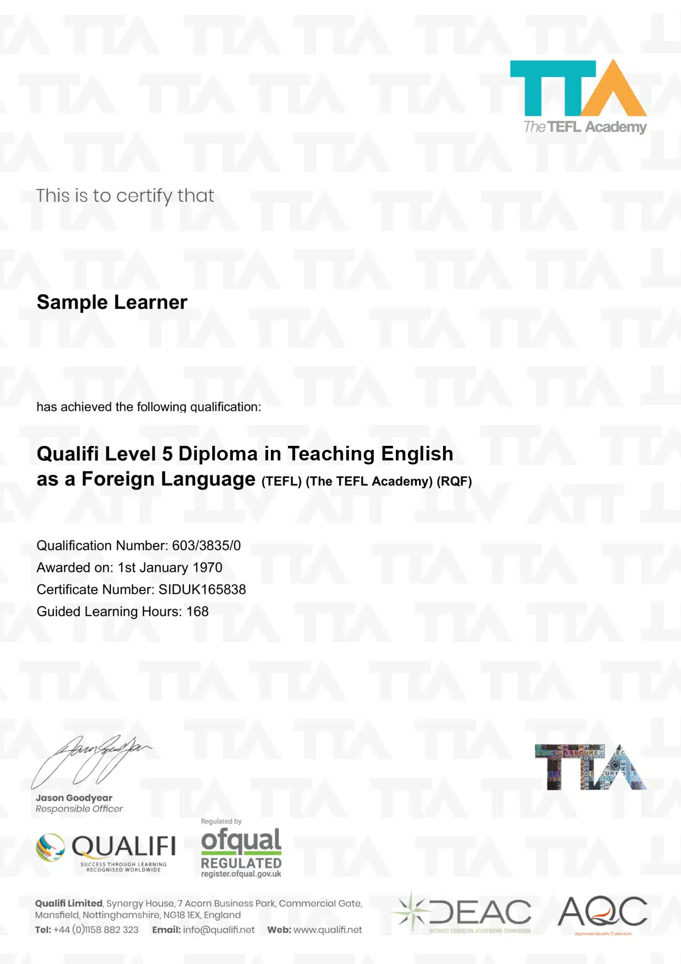 "Accredited TEFL qualification, awarded by Qualifi (Ofqual regulated awarding body). "