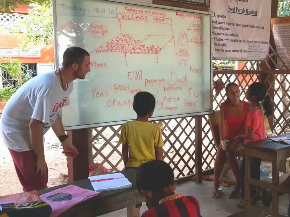 I wasn’t sure what to expect teaching Cambodian children but my classes ranged through 4 classes from age 8 to age 18. We would begin class at 8am and finish teaching at 6pm with a 3-hour siesta/lunch break in the middle of the day.