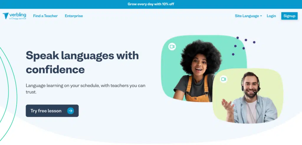 Verbling is an online platform that provides language lessons in more than 80 different languages. Classes take place 24/7 on Verbling’s own language platform. Lessons are conducted in a video format. Teachers have to create their own teaching material.